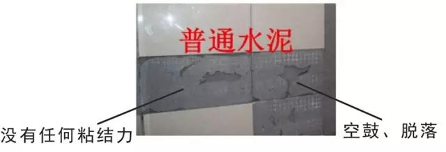 1、用普通水泥粘貼的瓷磚:很輕松就能將整塊撬開,瓷磚與墻面脫離,沒有任何粘結(jié)力;