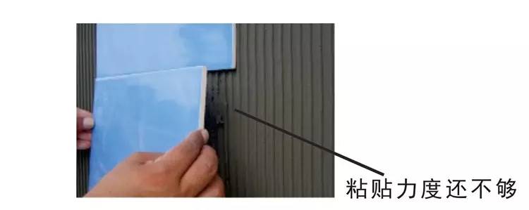 戶外干燥、風(fēng)大天氣,布膠批刮面積太大,施工來不及導(dǎo)致表層干固再貼磚會(huì)引起掉磚;用齒形刮板將膠漿均勻批刮在工作表面上,每次施工約1平方內(nèi),室外干燥氣候應(yīng)預(yù)先潤濕墻面。
