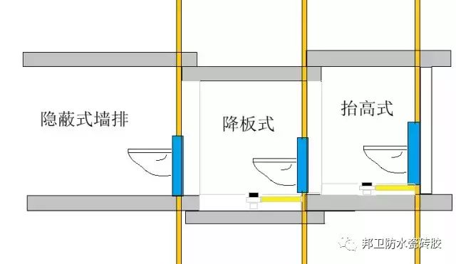 同層排水安裝主要包括三種:降板(衛(wèi)生間樓板或局部樓板下沉300mm左右作為管道敷設(shè)空間)、墻排(衛(wèi)生間潔具后方砌一堵假墻,形成一定寬度的布置管道的專用空間)和墊層式(墊高衛(wèi)生間地面)。目前國內(nèi)同層排水多采用的是降板技術(shù),F(xiàn)和大家介紹采用同層排水技術(shù)的下沉式衛(wèi)生間的防水施工注意事項(xiàng)。
