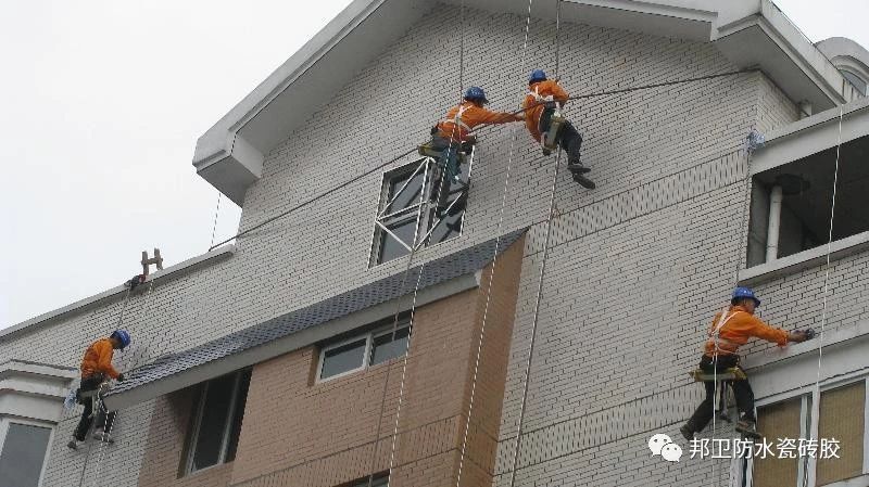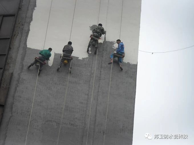 7)外墻防水工程嚴(yán)禁在雨天、雪天、5級及以上風(fēng)速下施工;施工的環(huán)境溫度宜為5~35℃,施工時(shí)應(yīng)采取安全防護(hù)措施。