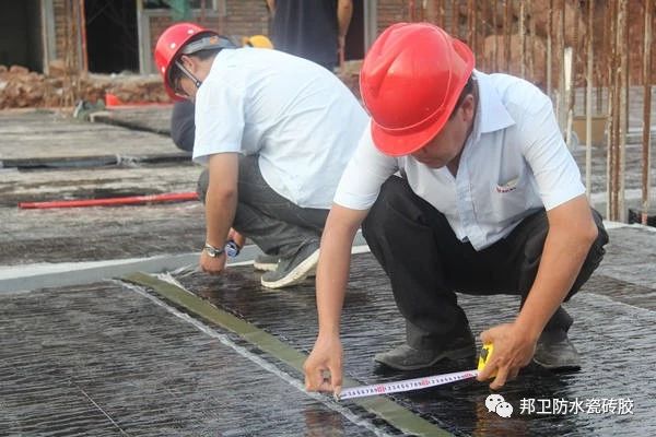 4)涂膜防水層施工前,墻面應(yīng)濕潤但無明水。防水涂料涂布前,宜涂刷基層處理劑,或在找平層上刷一道聚合物水泥凈漿,然后再均勻涂刷防水涂料。聚合物水泥防水涂料應(yīng)分遍、多次涂刷完成,每遍涂刷應(yīng)交替改變涂層的涂刷方向,前后兩遍的涂刷方向應(yīng)互相垂直,同一涂層涂刷時(shí),后遍應(yīng)在前遍涂層干燥成膜后進(jìn)行,涂膜防水層的甩茬部位不得污損,先后接茬寬度不應(yīng)小于100mm。防水層與基層必須粘結(jié)牢固,表面平整不留氣泡。涂膜防水層完工并經(jīng)檢驗(yàn)合格后,應(yīng)及時(shí)做好飾面層。