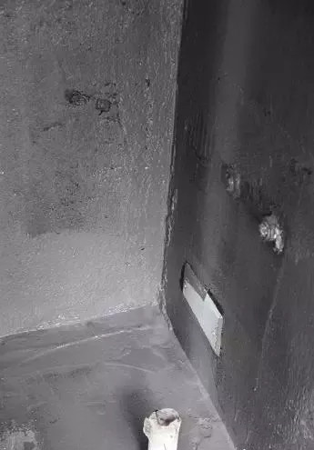 再次提醒,防水很多師傅是用滾筒來施工,一是方便,二是刷的均勻,形成防水膜也會(huì)厚一些。但旮旯拐角處是滾筒無法觸及的,必須要用刷子仔細(xì)的再刷一次。切記切記,從以往滲水的案例來看,90%問題都出來這里。