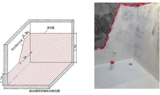 防水基層要抹平壓光,不允許有凹凸不平、松動(dòng)和起砂掉灰等缺陷存在。涂膜防水施工前,將基層表面雜物清掃干凈,對(duì)陰陽角、管道根部、地漏及排水口等部位重點(diǎn)清理,做到牢固、干凈、無明水。所有管道、地漏或排水口等部件應(yīng)安裝牢固,接縫嚴(yán)密,收頭圓滑,不得有任何松動(dòng)。按設(shè)計(jì)2mm厚高分子水泥基涂料,分4遍成活。先涂刷底涂,第一度涂層完全固化后,用無紡布加強(qiáng)粘貼,再涂刷第二層(一般間隔6~8小時(shí))。根據(jù)涂層固化程度再涂第三層、第四層。