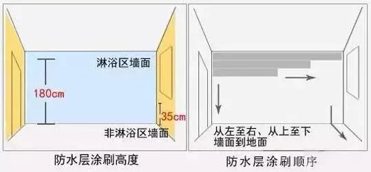 ▲刷防水涂料時是由下至上,先刷墻后刷地。第一遍橫向涂刷,第二遍縱向涂刷,相互疊加涂刷可以達(dá)到均勻的效果。第一遍和第二遍涂刷間隔時間最好在4~8小時左右。很多讀者只關(guān)注看得到的地方,愿意在瓷磚和墻面上花費大量金錢,卻對隱蔽的防水材料舍不得花錢,恨不得買最便宜的。殊不知,防水材料的防水性能和使用年限都大不相同。