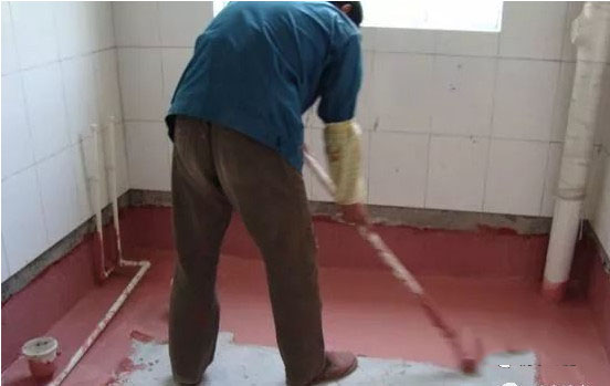 室內(nèi)衛(wèi)生間的聚氨脂防水層施工。