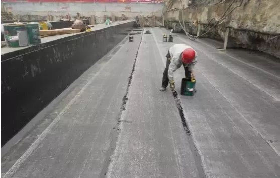 檢查抹灰質(zhì)量和干燥程度,掃刷干凈,在根部鋪一層附加層,附加卷材寬300mm,卷材上端要粘牢固(其余為空鋪),在立墻和頂面,卷材要滿粘貼,墻頂面蓋一條與墻面同寬的卷材,貼好一面后,縫中嵌入襯墊材料,再貼好另一面,上面再覆蓋一層卷材,卷材比墻外兩邊寬200mm,覆蓋后粘牢,用現(xiàn)澆或預(yù)制鋼筋混凝土蓋板扣壓牢固,預(yù)制蓋板的接縫用密封膏嵌填密實(shí)。