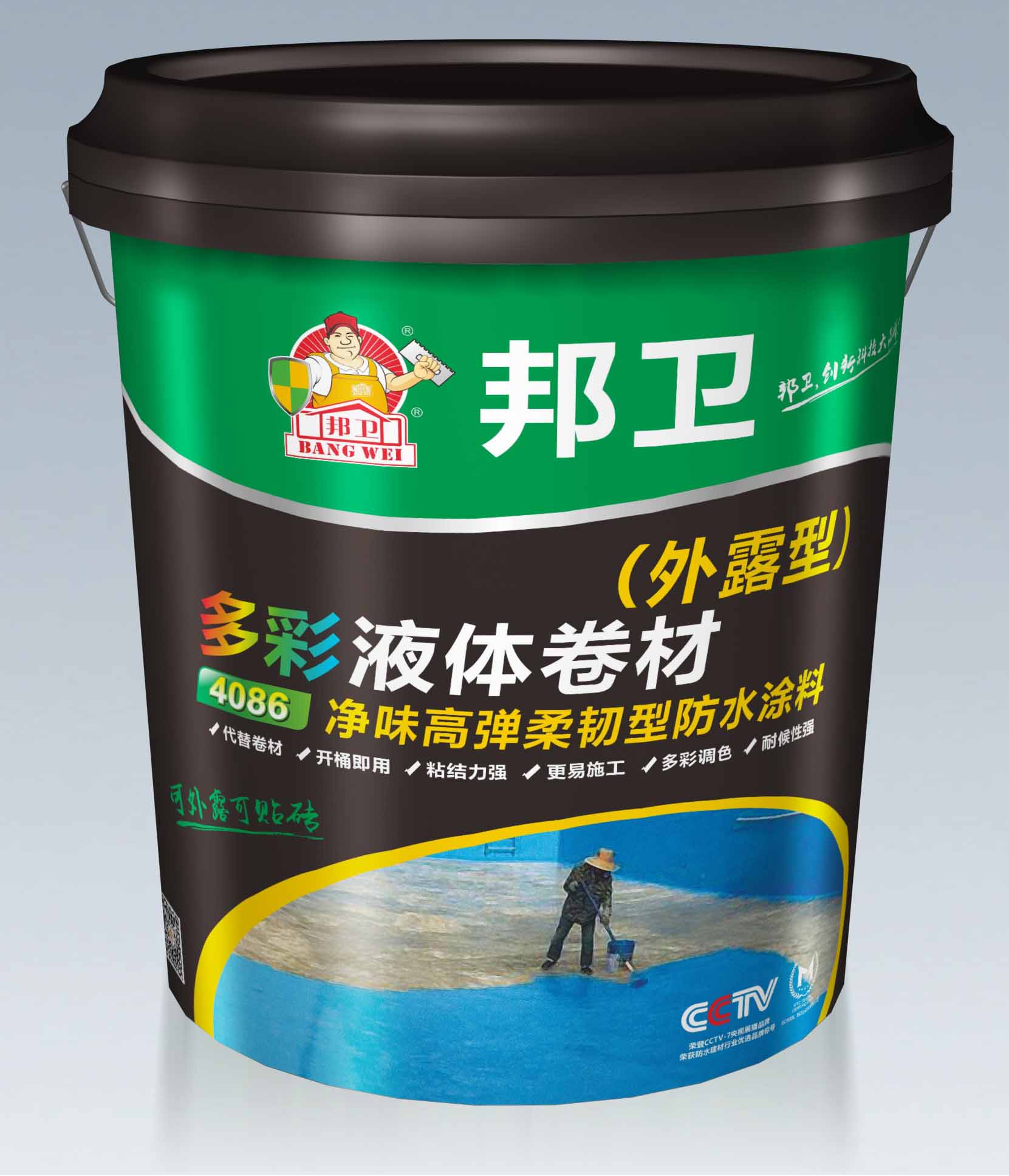 邦衛(wèi)多彩液體卷材防水(外露型),采用了高級彈性環(huán)保乳液經(jīng)過獨家研發(fā)配方,特殊工藝加工制作成水乳型改性單組份防水涂料。代替?zhèn)鹘y(tǒng)的油性SBS和瀝青,達(dá)到凈味、環(huán)保、適應(yīng)室內(nèi)、室外大面積防水工藝要求的新型防水涂料。產(chǎn)品代替?zhèn)鹘y(tǒng)卷材的使用,同時除具備了傳統(tǒng)卷材的特點外,更增加了自身優(yōu)點,開桶即用、凈味環(huán)保、彩色多樣、可外露使用等特點。