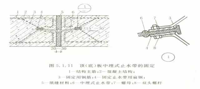 2)、中埋式止水帶中心線應(yīng)和變形縫中心線重合,止水帶不得穿孔或用鐵釘固定;