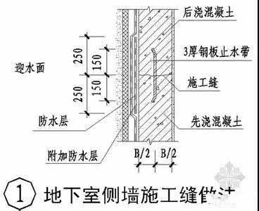 2、防水混凝土的變形縫、施工縫、后澆帶、穿墻管道、埋設(shè)件等設(shè)置和構(gòu)造,均需符合設(shè)計(jì)要求,嚴(yán)禁有滲漏。