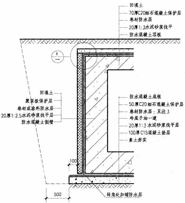 基層陰陽角應(yīng)做成圓弧或45°坡角,其尺寸應(yīng)根據(jù)卷材品種確定;在轉(zhuǎn)角處、變形縫、施工縫,穿墻管等部位應(yīng)鋪貼卷材加強(qiáng)層,加強(qiáng)層寬度宜為300mm~500mm。