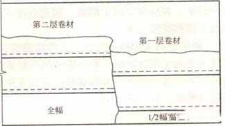 鋪貼雙層卷材時(shí),上下兩層和相鄰兩幅卷材的接縫應(yīng)錯(cuò)開1/3~1/2幅寬,且兩層卷材不得相互垂直鋪貼(單層卷材鋪貼時(shí)相鄰兩幅卷材的接縫也應(yīng)錯(cuò)開1/3~1/2幅寬)。