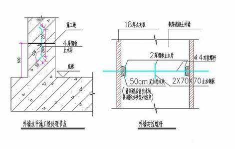 3)、固定模板用的螺栓必須穿過砼結(jié)構(gòu)時(shí)螺栓或套管應(yīng)滿焊止水環(huán)或翼環(huán);采用工具式螺栓或螺栓加堵頭做法,折模后應(yīng)采用加強(qiáng)防水措施將留下的凹槽封堵密實(shí)。