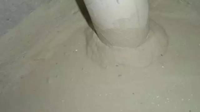 管根孔洞在立管定位后,樓板四周縫隙用1:3水泥砂漿堵嚴;縫大于20mm時,采用細石混凝土堵嚴;管根與混凝土(水泥砂漿)之間應留凹槽,槽深10mm、寬20mm,槽內嵌填密封膏。
