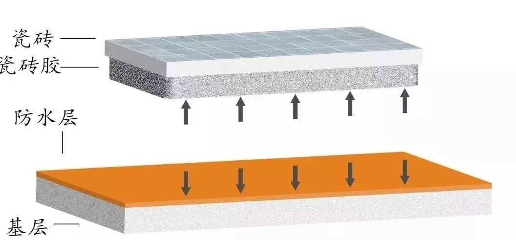 3. 防水層被拉斷,一部分留在基層上,一部分隨著瓷磚膠/水泥砂漿脫落