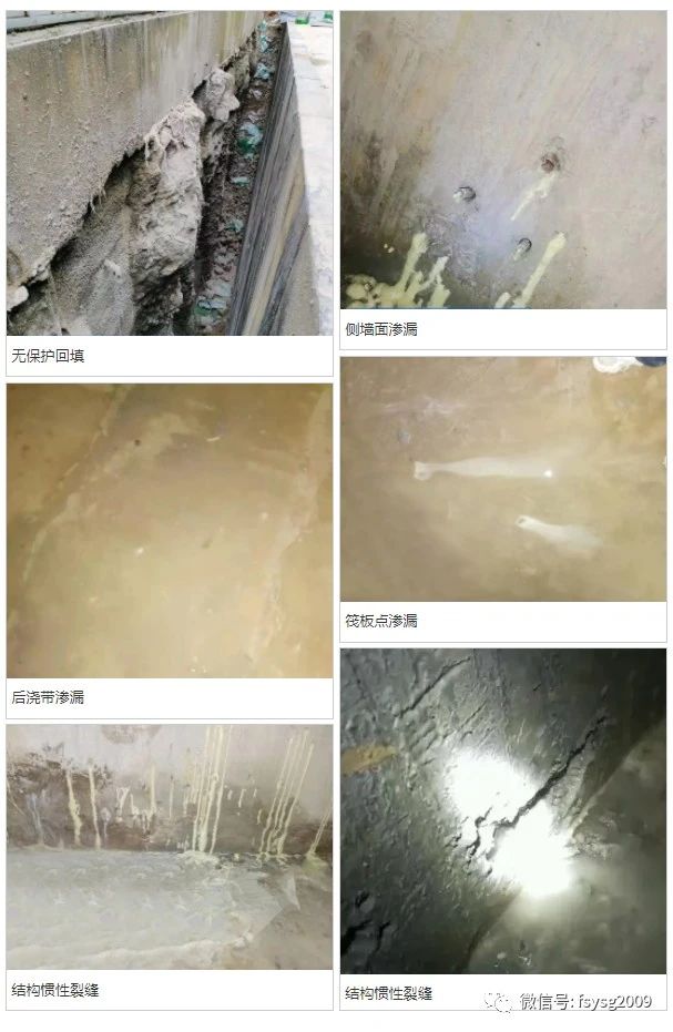 1、剪力墻、底板、頂板局部存在裂縫,有些深長裂縫貫通結(jié)構(gòu)層;施工縫、變形縫、后澆帶的縫隙,界面處理不當(dāng),局部存在縫隙剝離,這些縫隙能透過水分。