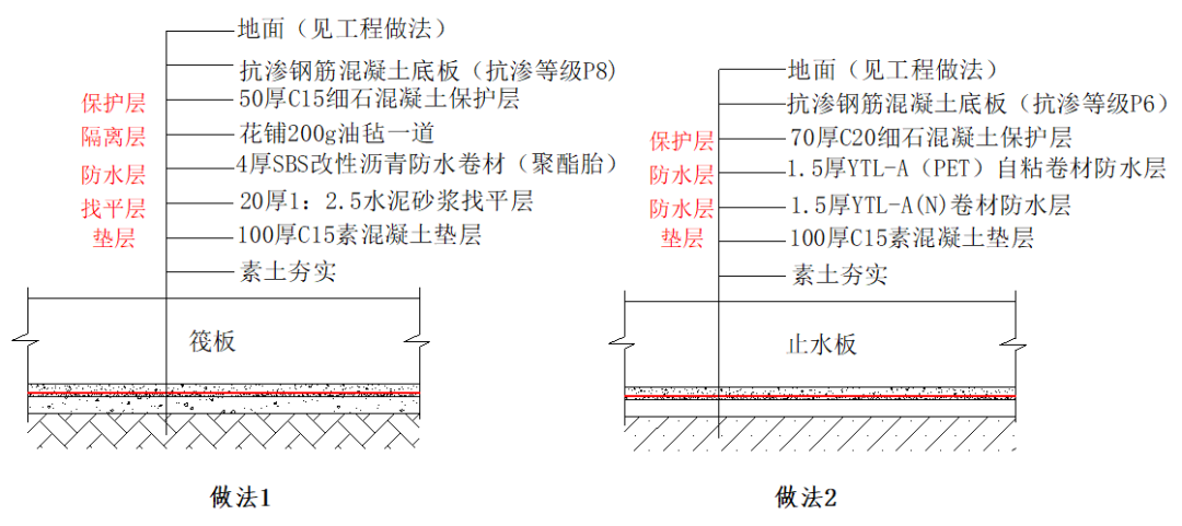 在需要增加附加層的部位,施工縫、變形縫、后澆帶、穿墻管等部位必須鋪設(shè)防水加強(qiáng)層。依據(jù)工程實(shí)際情況可先作亦可后作。
