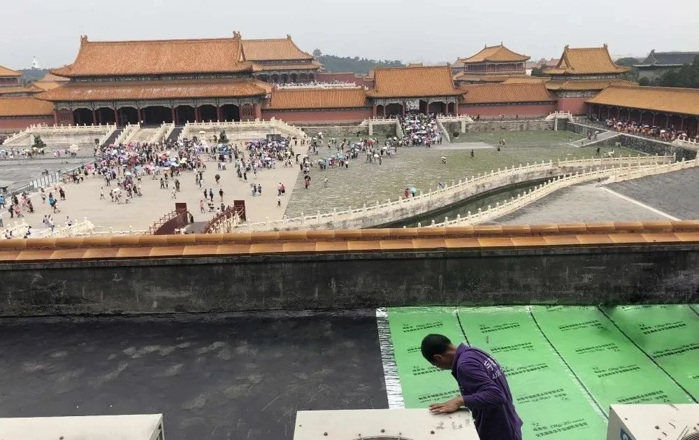 怎樣在保障游客安全的基礎(chǔ)上,確保防水工程的萬(wàn)無(wú)一失,是擺在故宮防水維修工程面前的頭等大事。經(jīng)過(guò)多輪篩選,專家們一致選定了,無(wú)明火作業(yè)、環(huán)保無(wú)溶劑、無(wú)廢煙且耐久性好的防水材料————液體防水卷材!