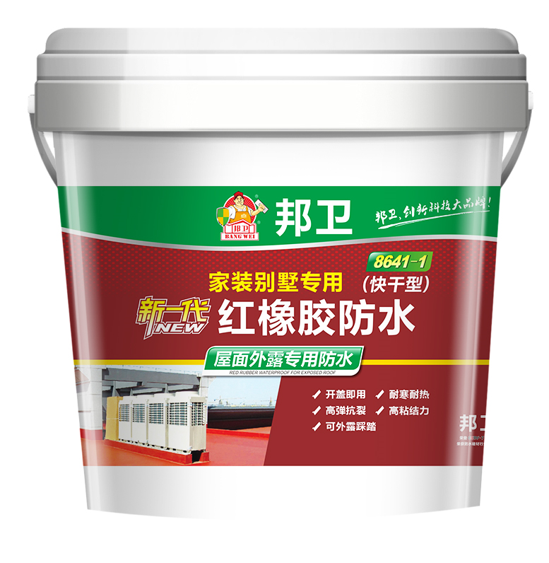 邦衛(wèi)新一代紅橡膠屋面外露專用防水涂料是由本公司經(jīng)過長期研究家裝別墅等高級防水需求,并結(jié)合環(huán)保性前提,對橡膠類產(chǎn)品的彈性特性特點采用特殊工藝,改良出新一代橡膠特性的水性屋面外露專用防水;該產(chǎn)品經(jīng)過調(diào)整創(chuàng)新后應(yīng)用于家裝別墅專用和高級屋面外露防水專用;產(chǎn)品開蓋后可以直涂于各種材面屋面,涂刷混凝土屋面可做外露型防水,涂刷金屬屋面可做隔熱防銹作用;涂刷后經(jīng)固化成為橡膠狀防水層,形成高粘結(jié)性和高強彈力的防水涂膜,具備有機材料彈性好與無機材料耐久性好之雙重優(yōu)點,可抵御基層適度裂紋修復(fù)和適度位移抗裂處理。